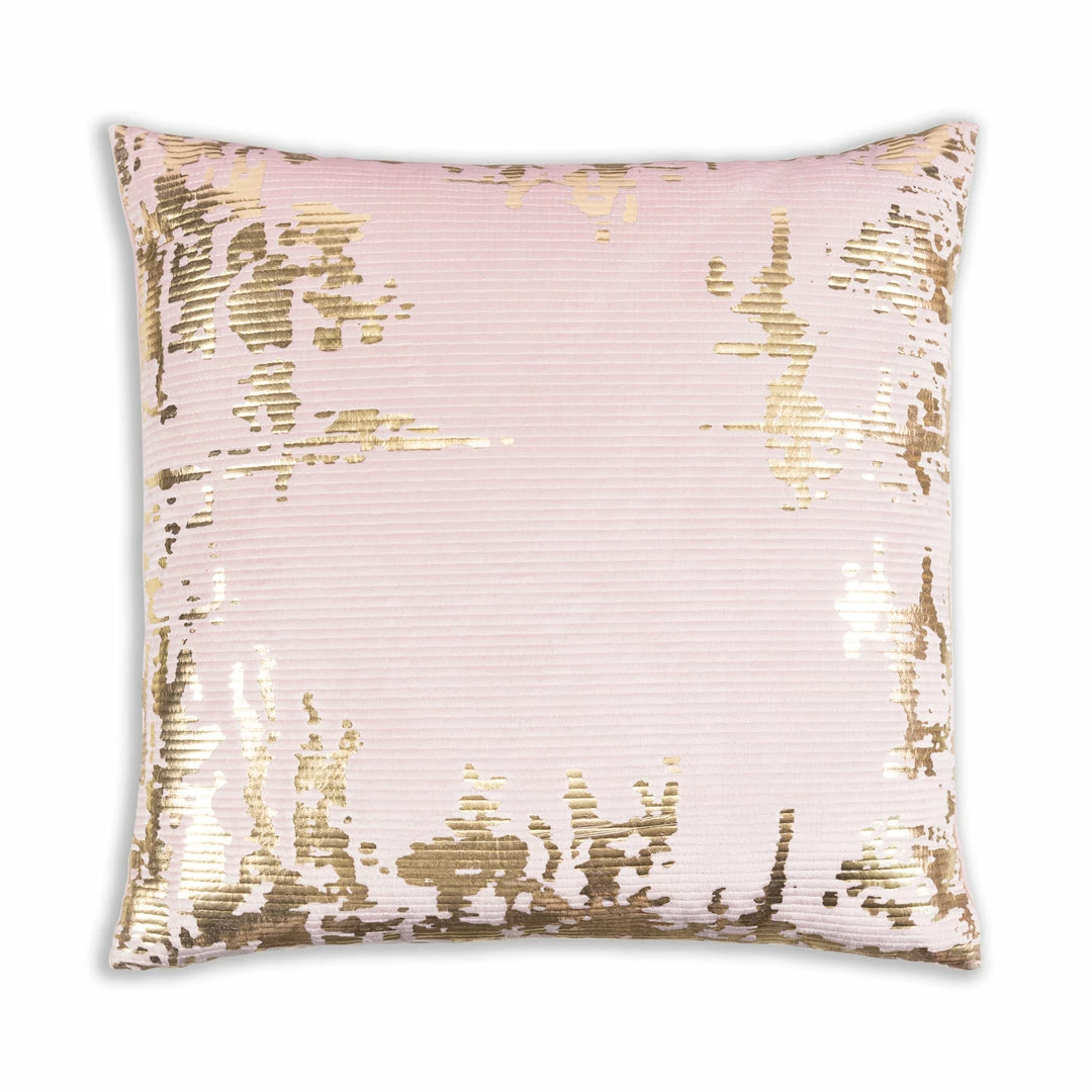 Mauve Velvet with Quilting and shiny gold foil print pillow with knife edge. Back: matching velvet.