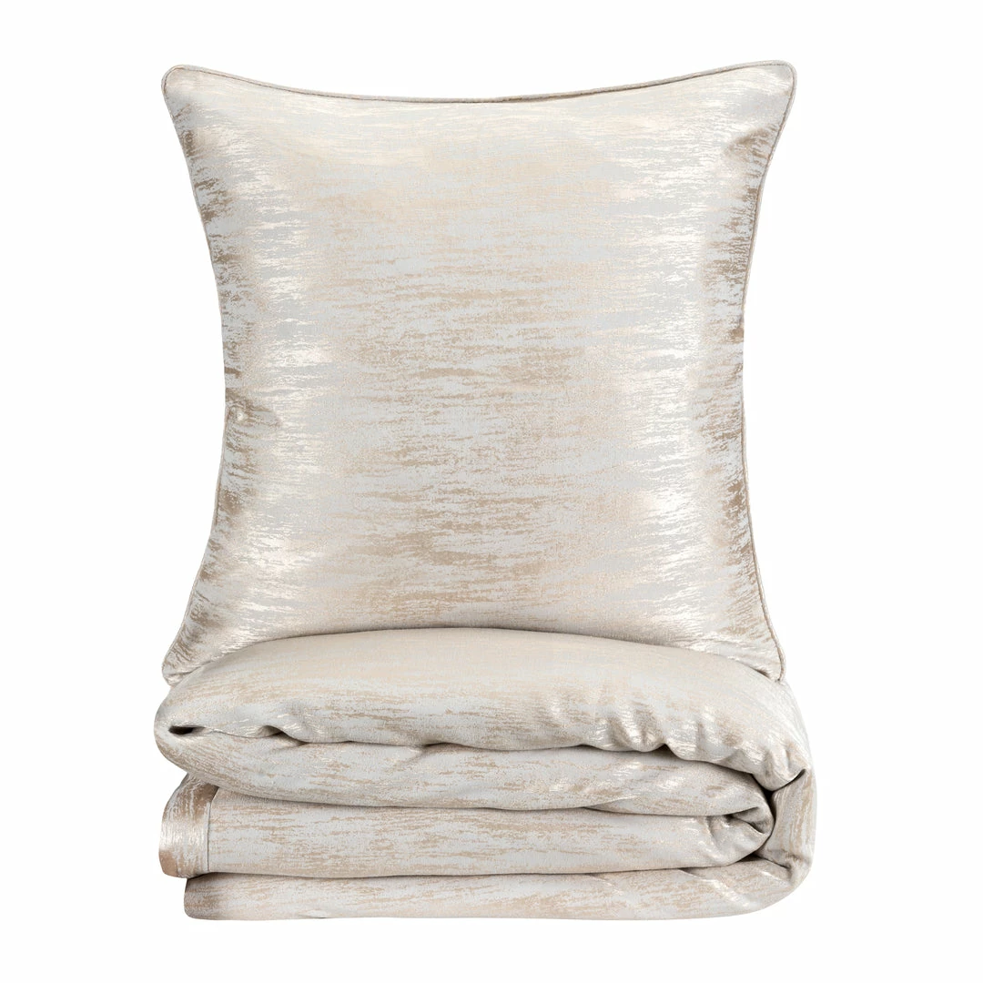 Dreams Collection- Gold Jacquard Duvet with matching standard shams. Flange on Duvet and shams