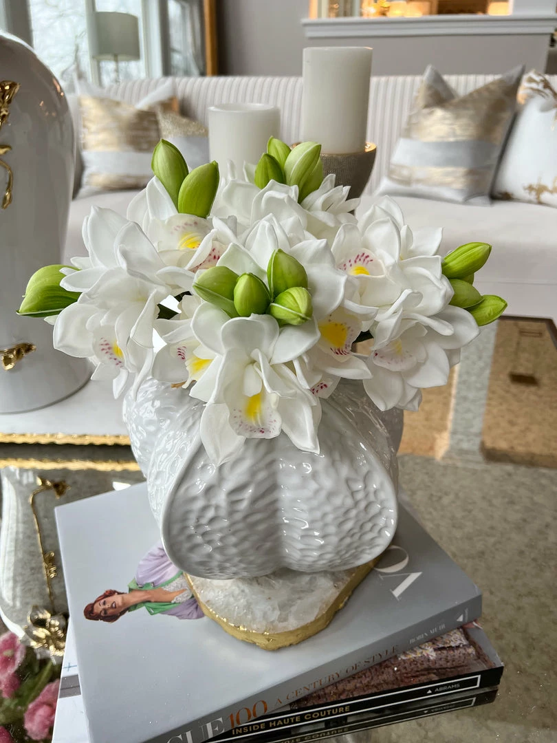 Description: This white orchid bundle has a touch of green and is the perfect reminder that spring is here! This will look lovely in any vase in any room!