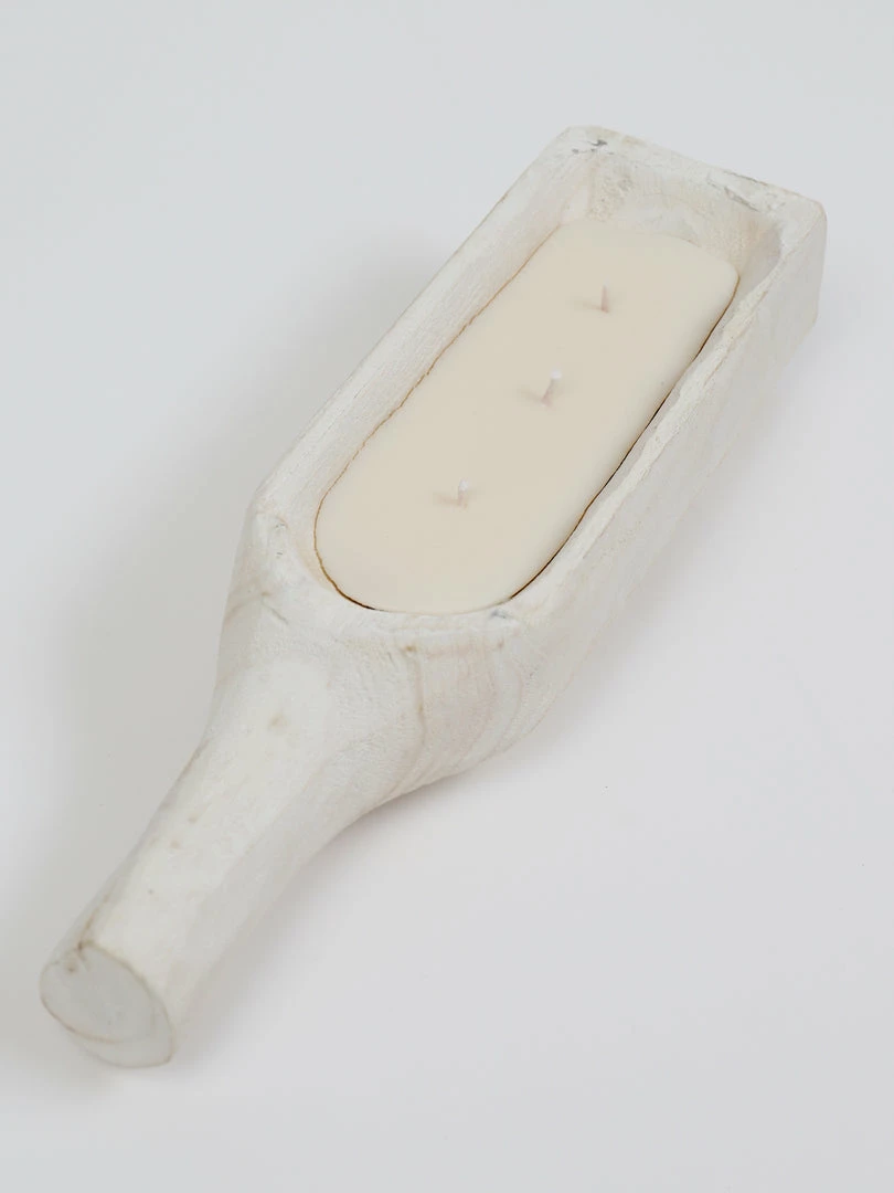 Description: This vanilla scented wood log candle works perfect for any decor.