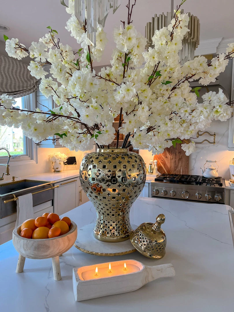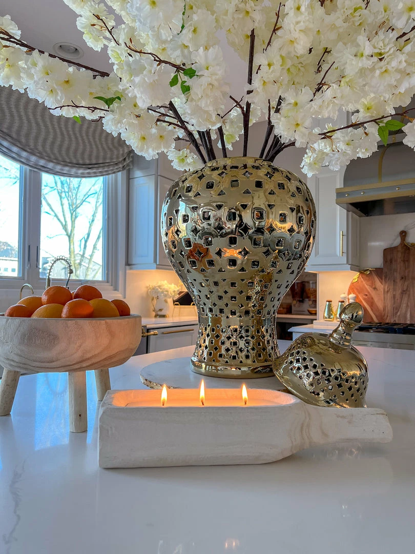Inspire Me! Home Decor Large Rectangular Marble Tray With Cherry Blossom Details