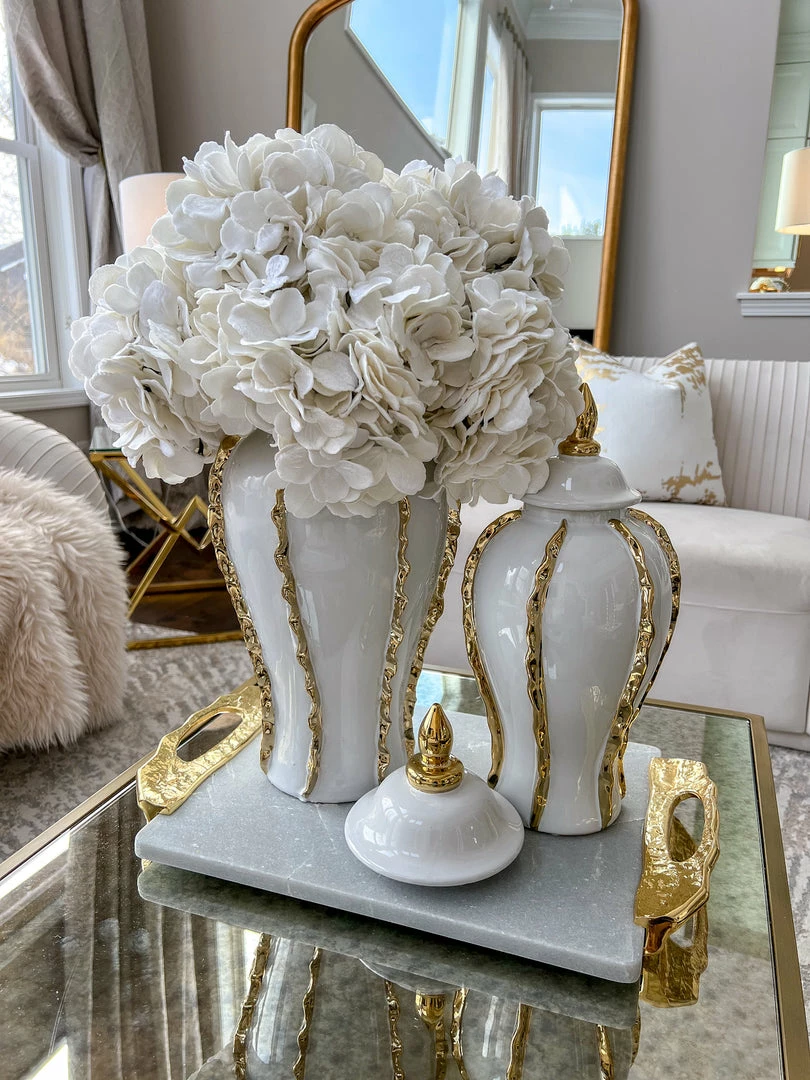 Inspire Me! Home Decor White Ceramic Vase With Stunning Gold Floral Detailed Center
