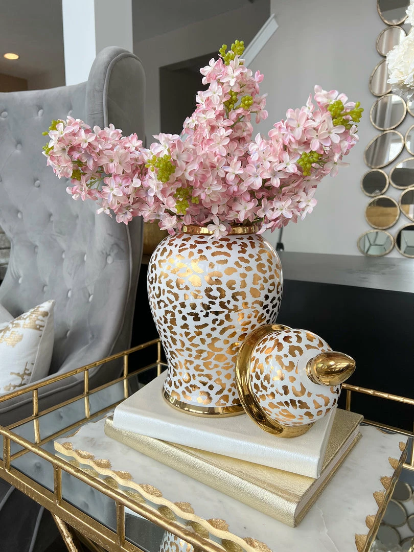 Inspire Me! Home Decor White Ceramic Vase With Stunning Gold Floral Detailed Center