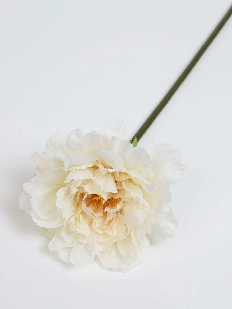 Description: This light cream Peony screams spring! We love the creamy tones that are perfect to style in your favorite vase and the soft look that these bring.