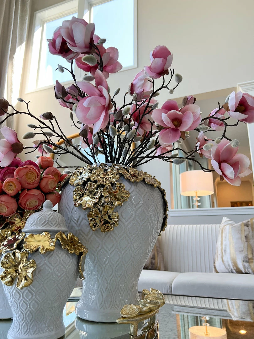 Description: This Pink magnolia is gorgeous and is perfect for every day and will work well with any decor style.