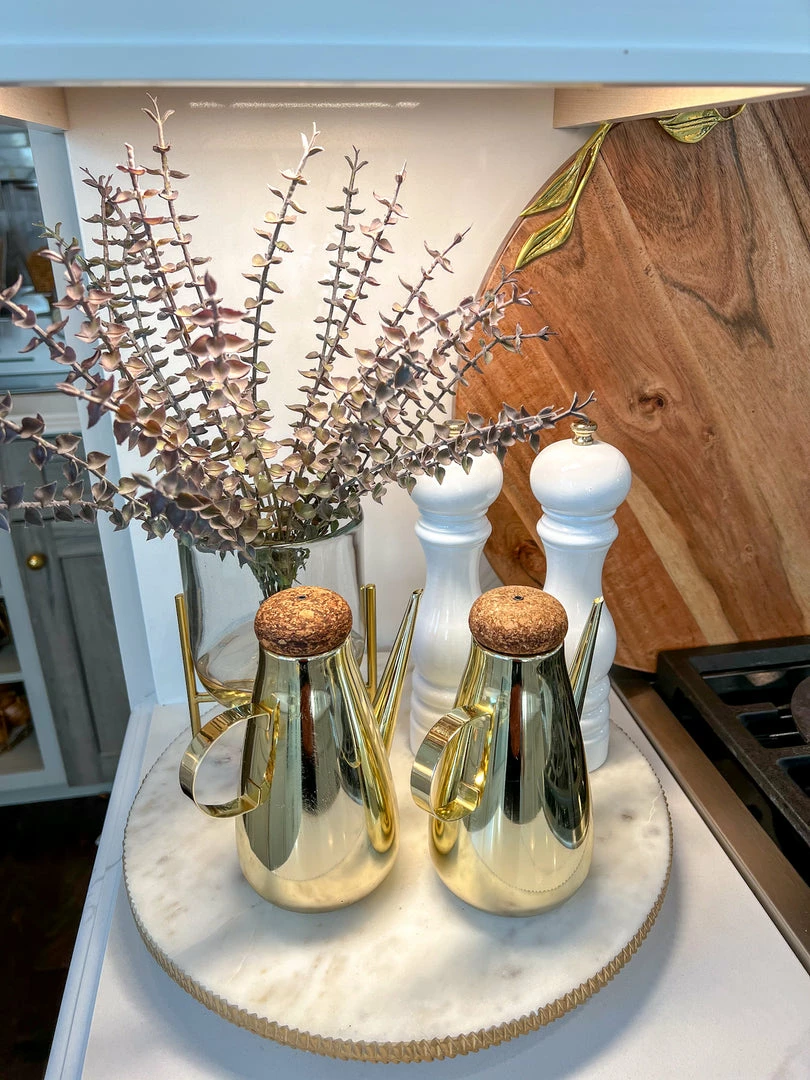Inspire Me! Home Decor Round Marble Tray With Gold Edge And Metal Details