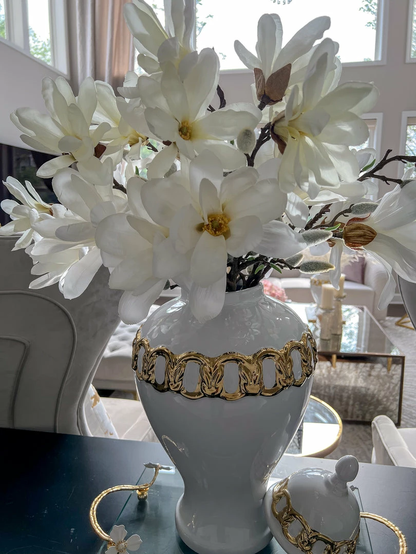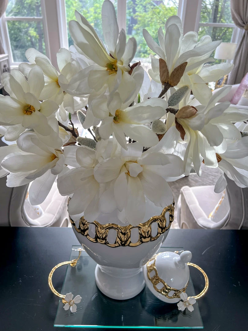 Inspire Me! Home Decor White Ceramic Vase With Stunning Gold Floral Detailed Center