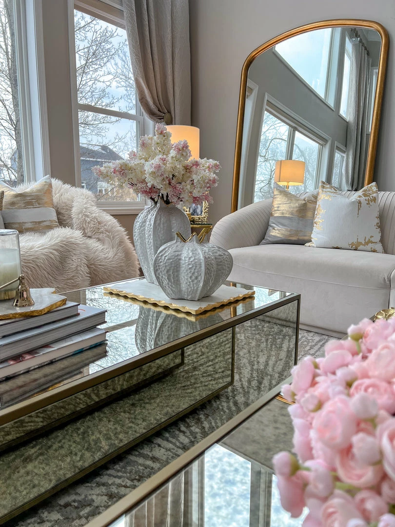 Inspire Me! Home Decor Large Rectangular Glass Tray With Cherry Blossom Details