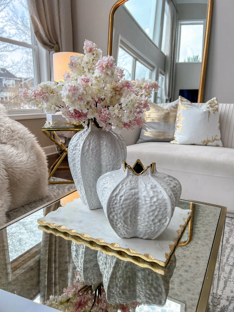 Inspire Me! Home Decor Large Rectangular Marble Tray With Cherry Blossom Details