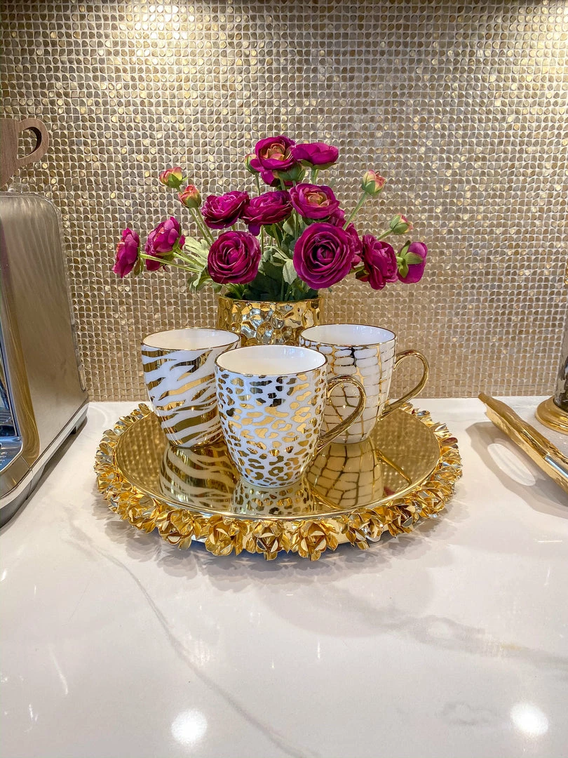 Inspire Me! Home Decor White Ceramic Vase With Stunning Gold Floral Detailed Center