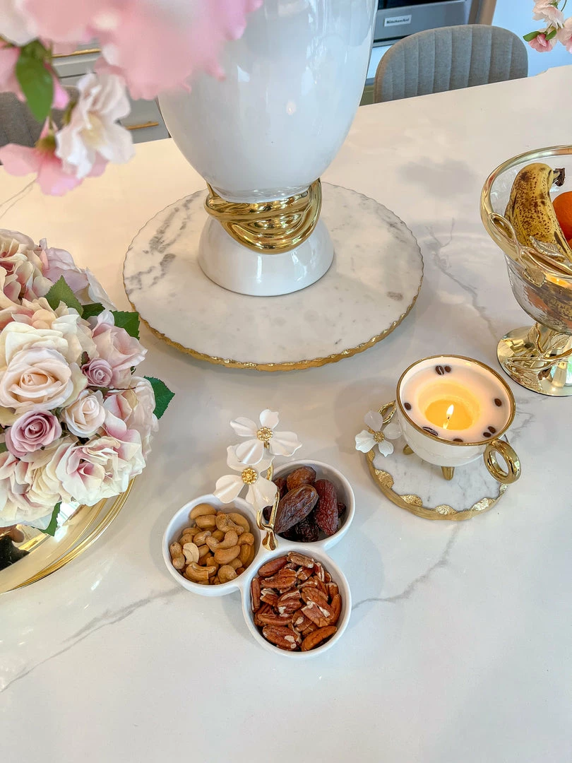 Inspire Me! Home Decor Round Marble Tray With Gold Edge And Metal Details