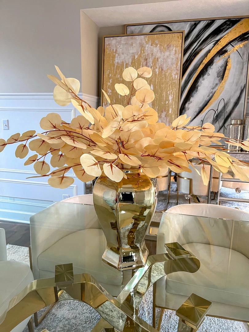 Description: This faux eucalyptus stem is a perfect addition to your favorite vase! Mix with other florals or bundle them as is!