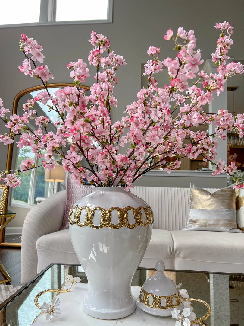 Inspire Me! Home Decor White Ceramic Vase With Stunning Gold Floral Detailed Center