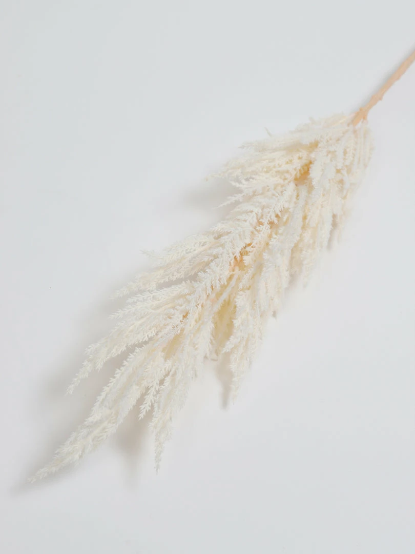 Description: This beautiful long pampas stem is perfect for anytime of the year! The white feathered textures offer a beautiful visual, and the long stem makes this perfect for your favorite IMHD ginger jar or taller vase!