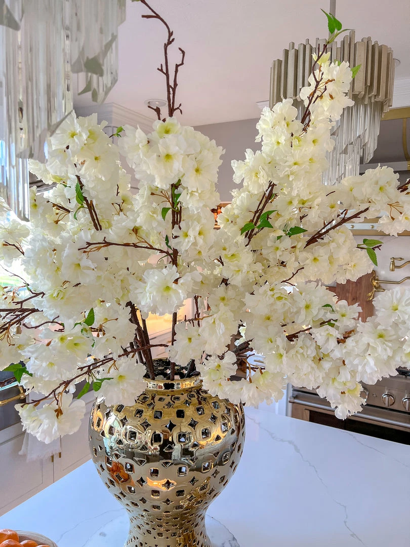 Description: This cherry blossom stem is the perfect accent for your home all year round! Perfect for a tall vase in an entryway and can be used all year round!