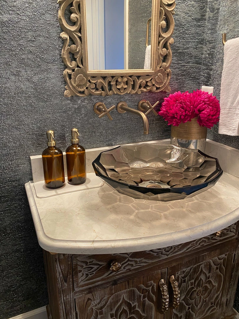 Description: Give your soap a glamourous new look with this beautiful soap dispenser! featuring a amber glass base and a brass top, this is a simple and elegant design that will look stylish in your home!