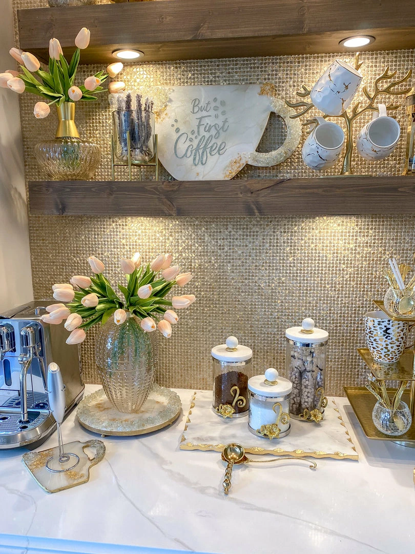 Description: These beautiful blush glass vases are the perfect accessory for your favorite florals. The textured base and gold painted neck make these so beautiful and elegant. Available in 2 sizes!