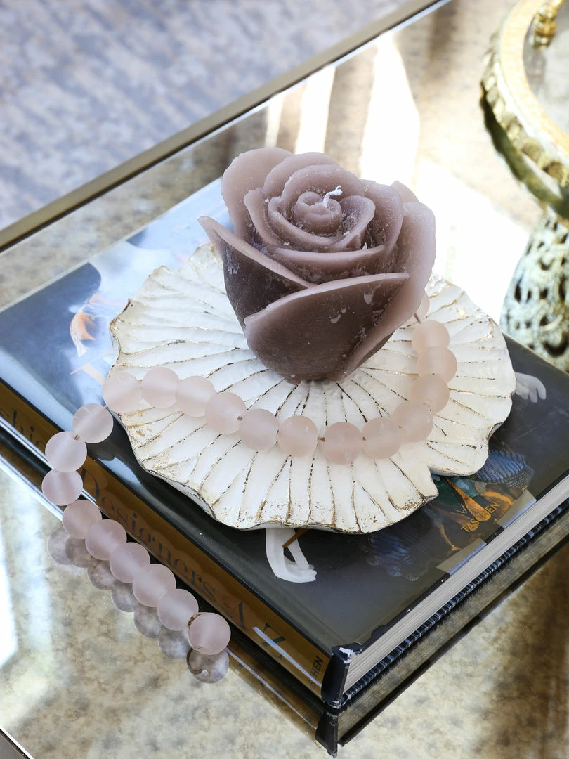 Description: Must-have alert! These stunning rose candles are beautifully crafted, where the entire candle takes on the delicate shape of a beautiful rose, with the wick centered in the beautiful bloom! Available in ivory, beige opaque, black, and blush.