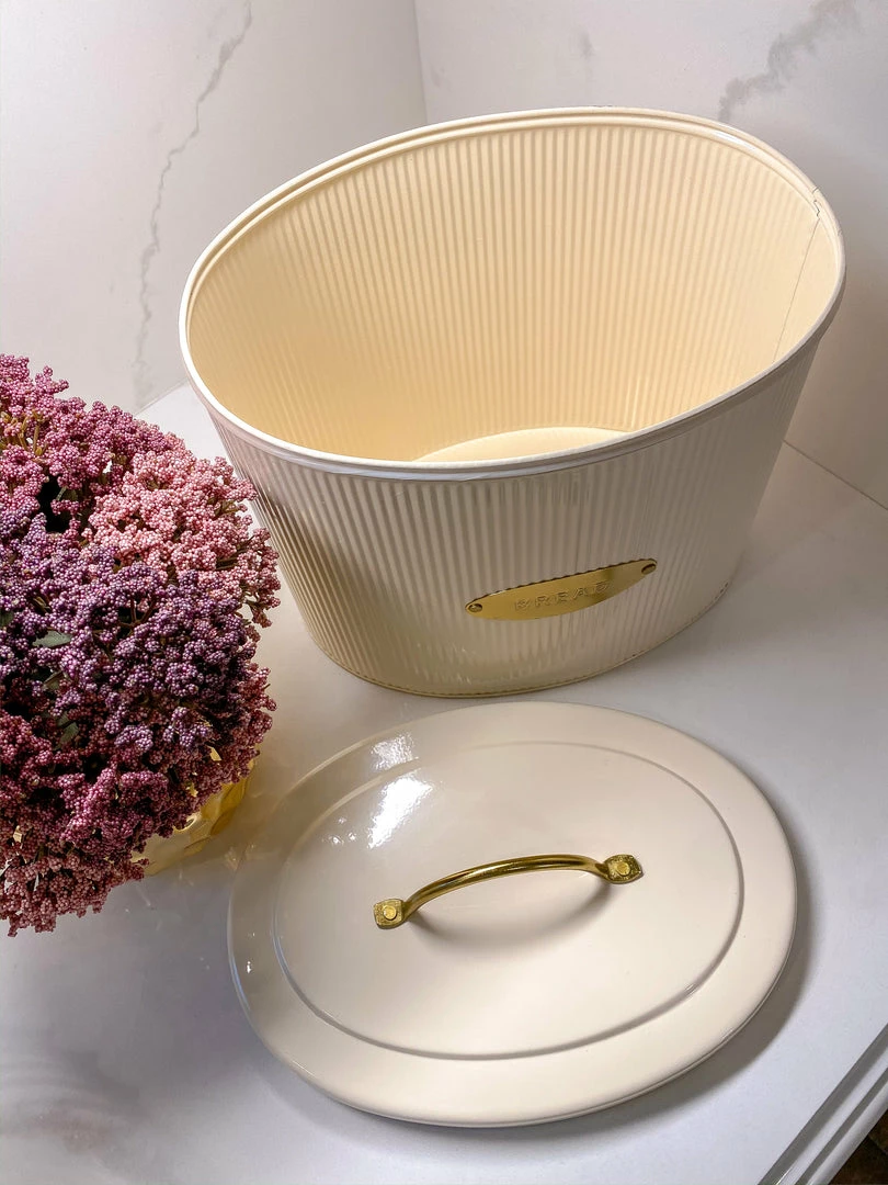 The cutest breadbox we have ever seen! Use these in your kitchen to hold your bread and snacks in a stylish way. Love the gold accents!