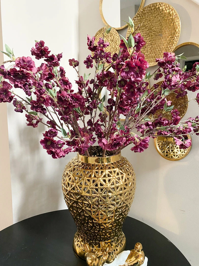 Description: This beautiful flower stem is perfect for the lover of color! The deep purple colored flowers explode from the the stem to create a beautiful and full look of flowers!