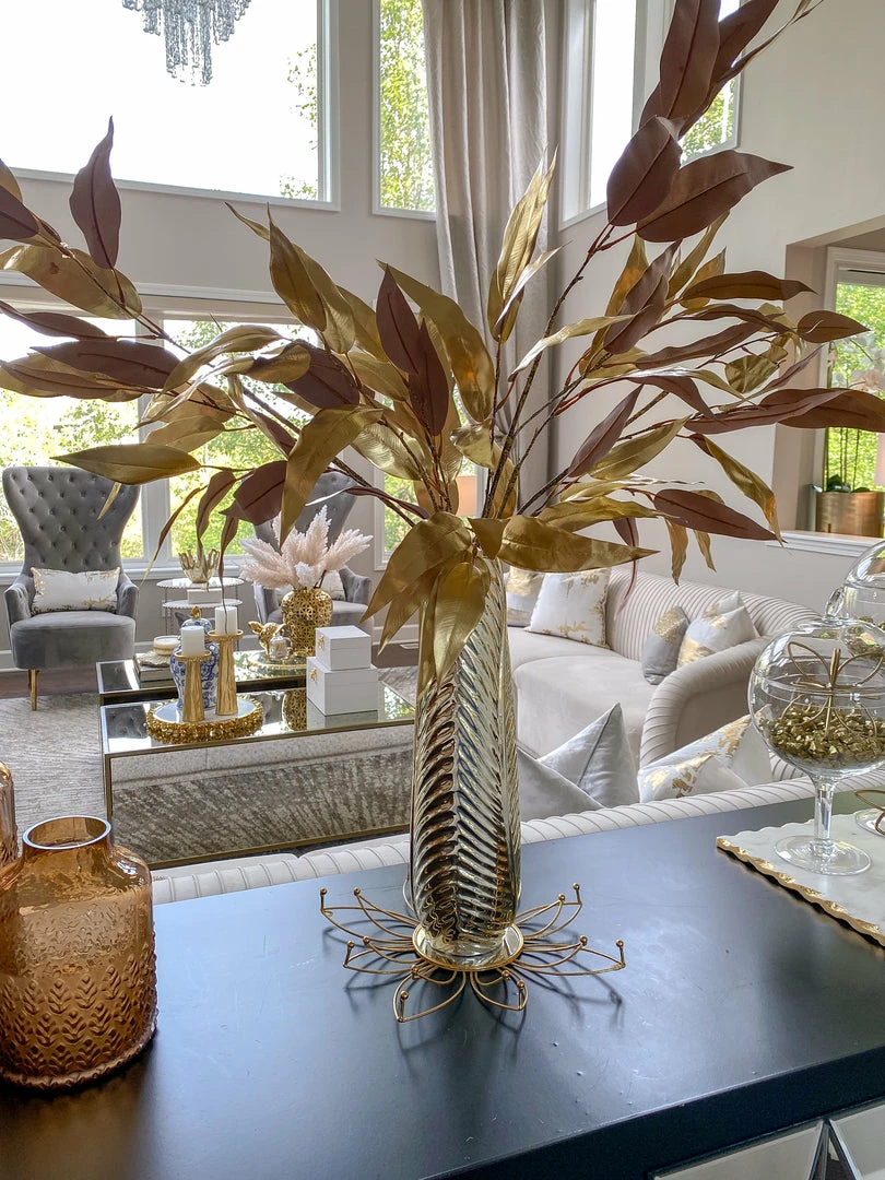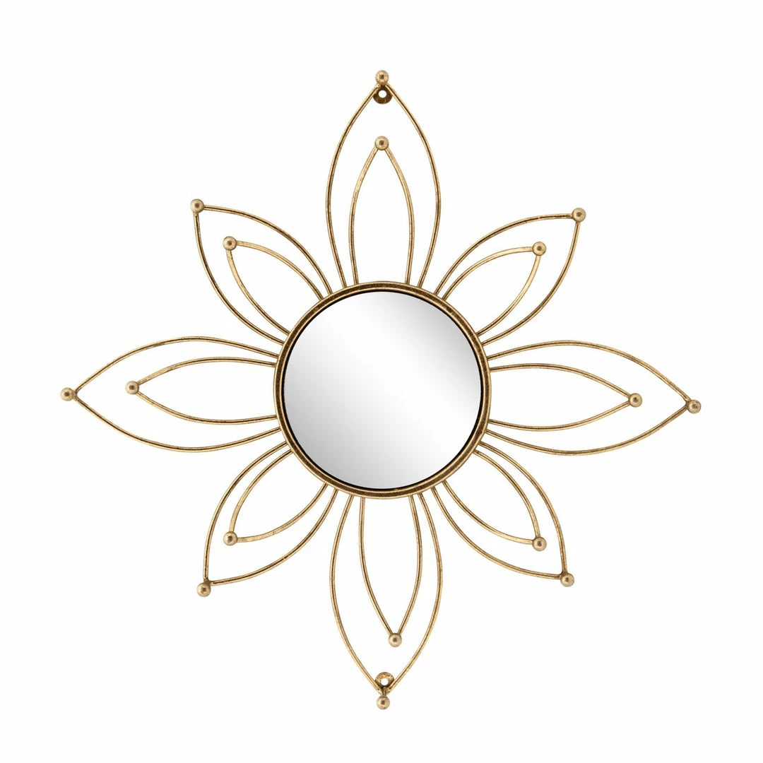 Description: This beautiful floral mirror is perfect for vanity wall! The gold petals frame a round mirror for a beautiful silhouette, and even has extra hooks to store your favorite necklaces and jewelry! Perfect for a vanity wall, or just as an elegant way to store your favorite accessories! Farah also has it styled as a decorative tray to add a fun new look to your home decor!Â
