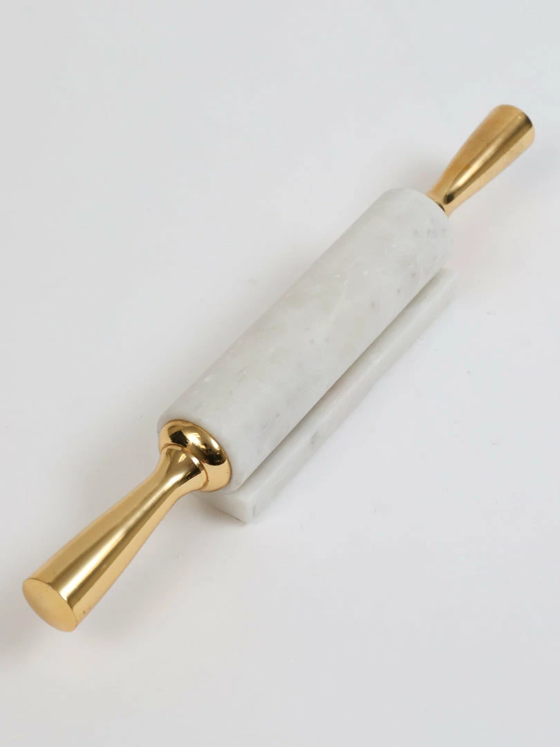 Description: Roll out your new style! Add a touch of glamorous style to your kitchen by displaying this dazzling solid marble rolling pin with its distressed golden handles and pay homage to your mothers and grandmothers.