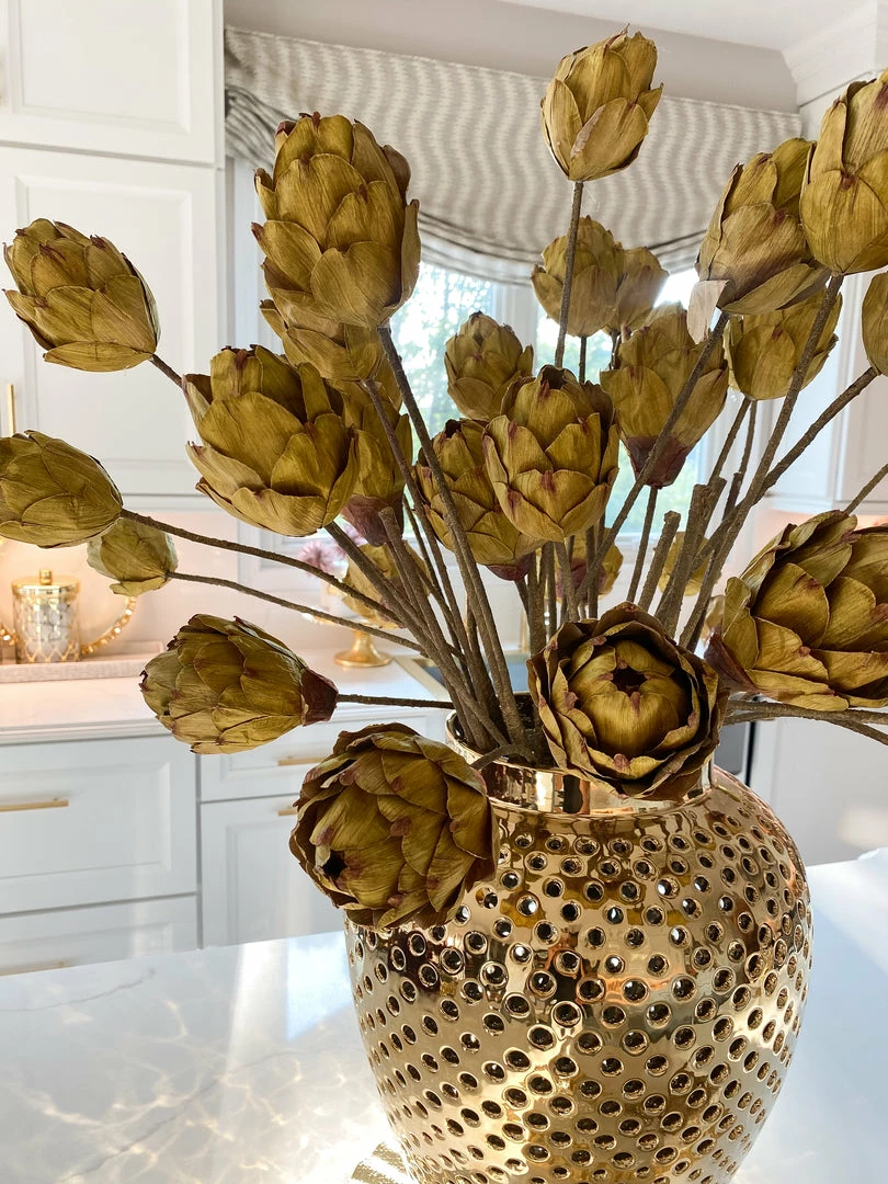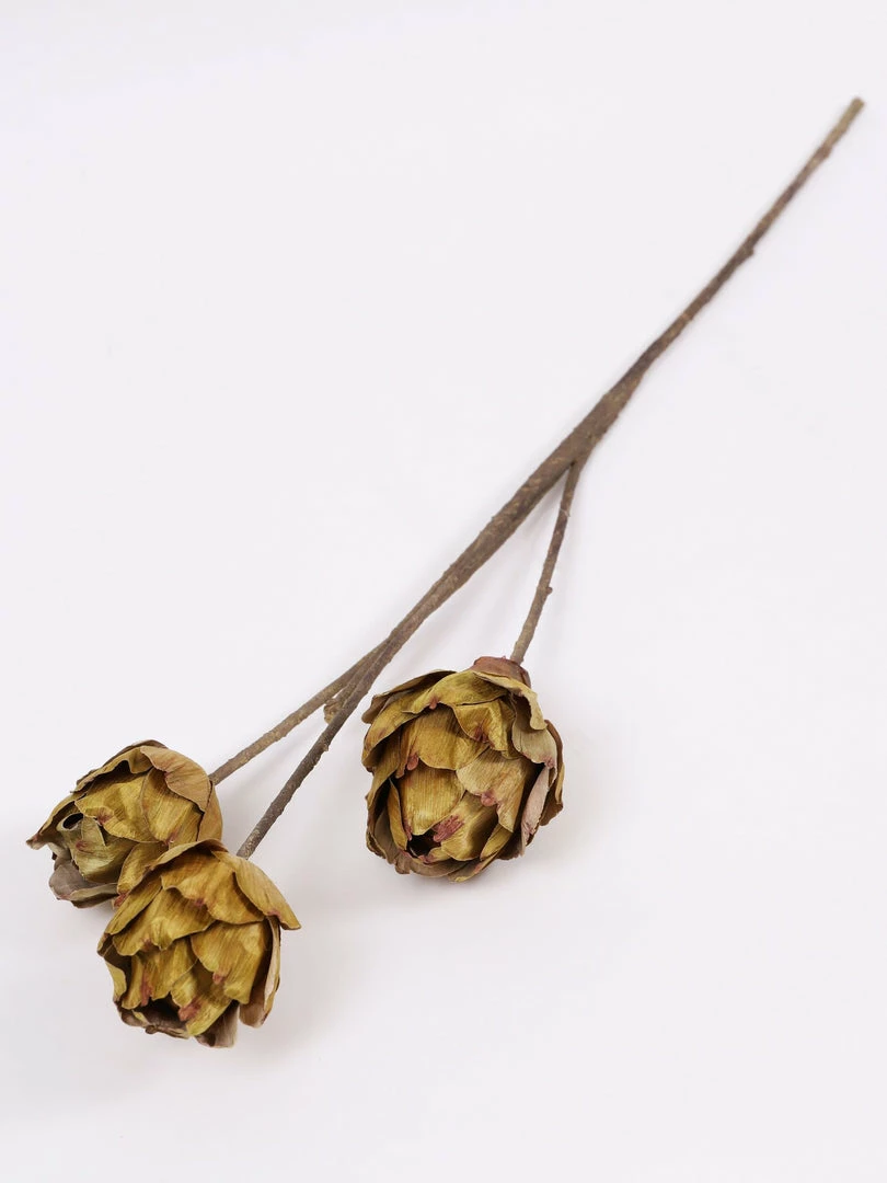 Description: Looking to add a unique touch to your fall floral arrangements? We have the perfect accessory! These faux dried artichoke stems offer a subtle pop of color and great texture.