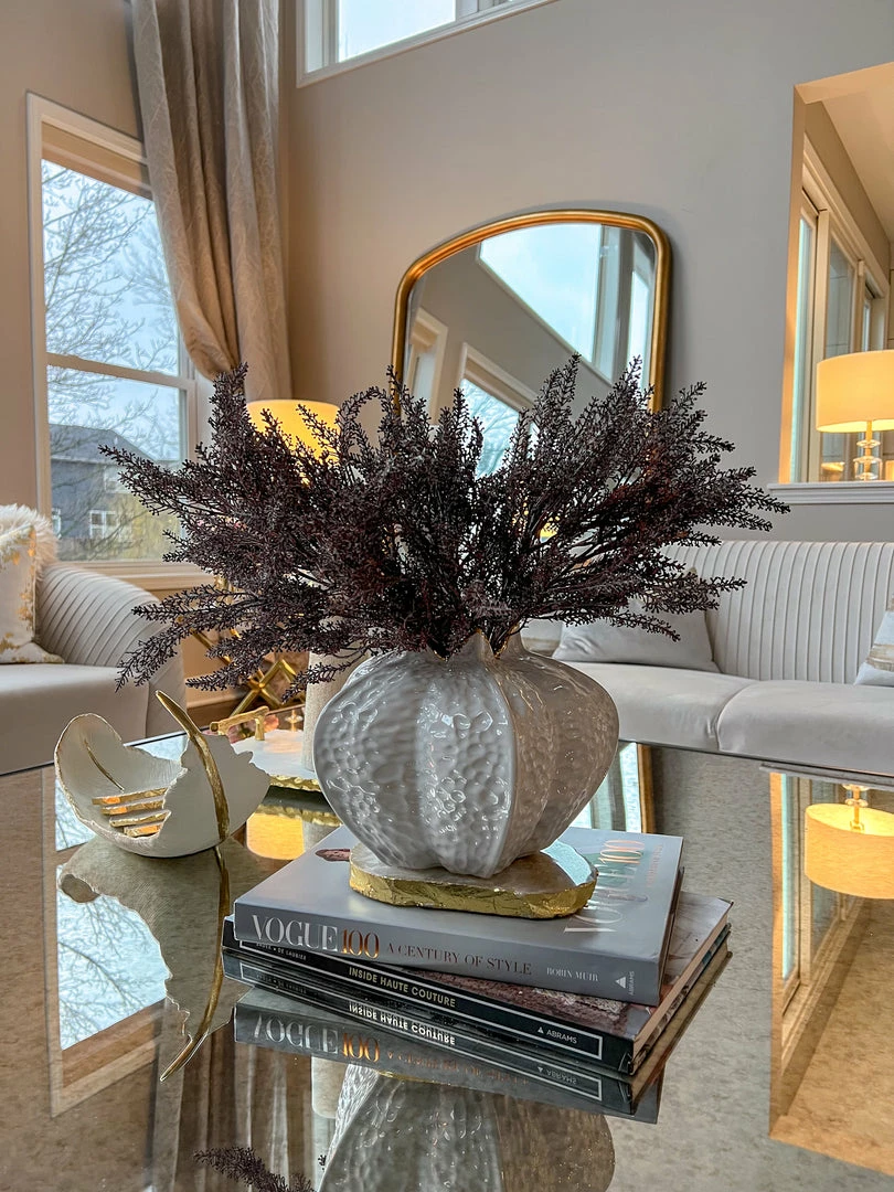 Please be aware that it is normal for the detailed and dried florals to shed when unpacking and styling.