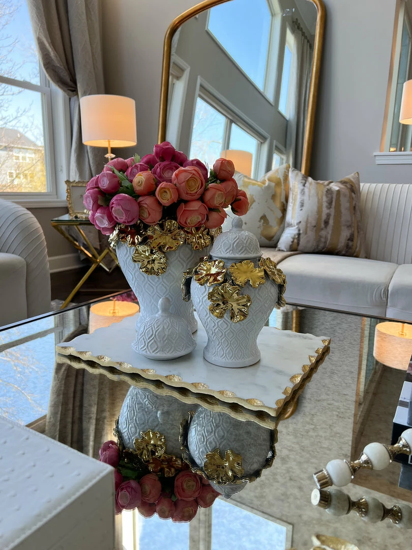 Inspire Me! Home Decor White Ceramic Jar With Elegant Gold Details (2 Sizes)