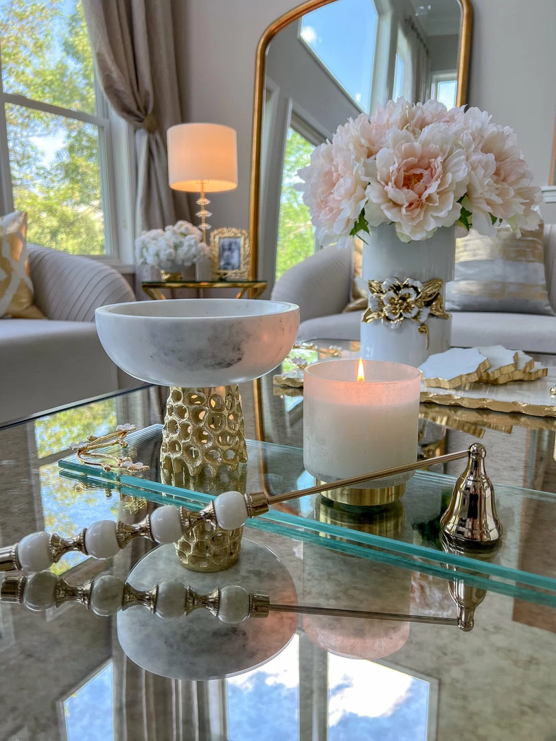Inspire Me! Home Decor White Ceramic Candle Holder With Gold Elegant Details (2 Sizes)