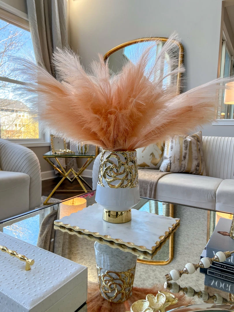 Description: This stunning feathered plume stem is perfect to add some drama to your favorite vases!