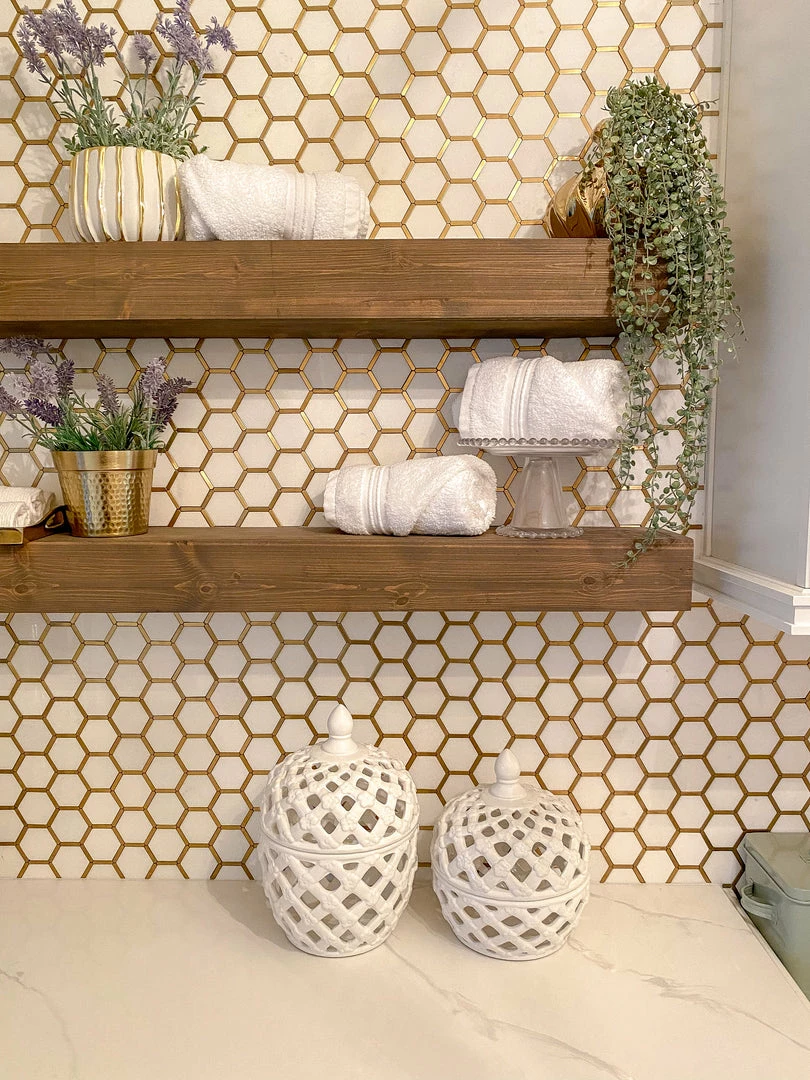 Inspire Me! Home Decor White Ceramic Vase With Stunning Gold Floral Detailed Center