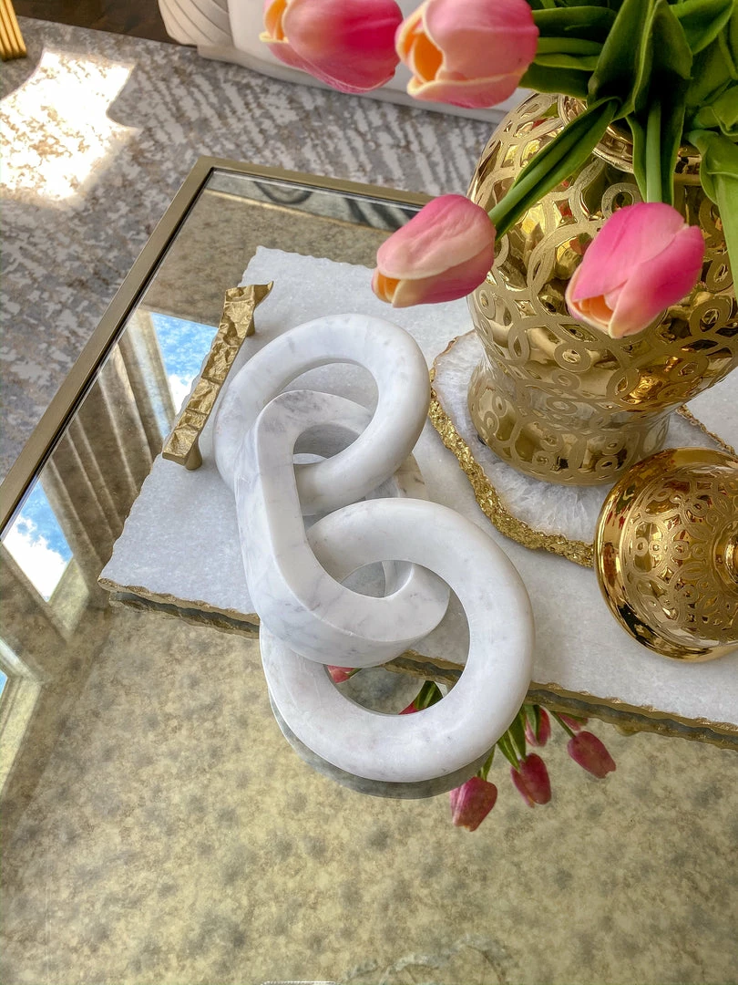 Description: This white marble chain decor is a great focal piece for your vignette. The geometric shape of the links make this a sleek and modern look, with the timeless elegance of marble.