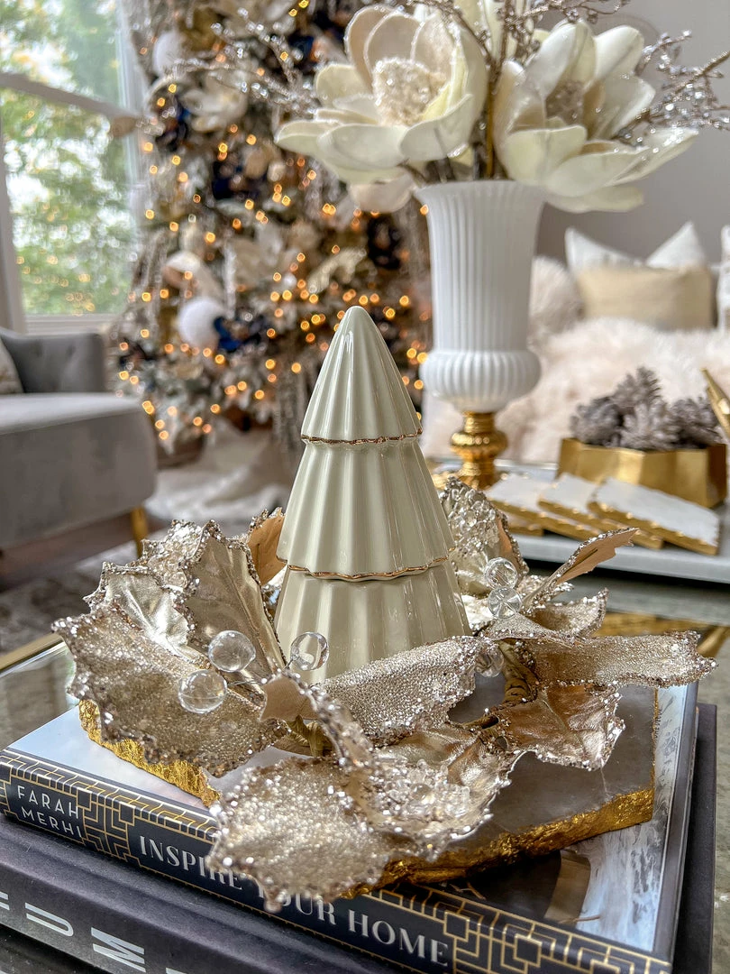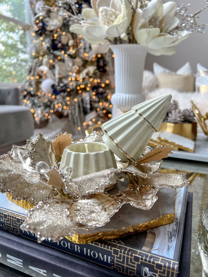 Inspire Me! Home Decor White Ceramic Candle Holder With Gold Elegant Details (2 Sizes)