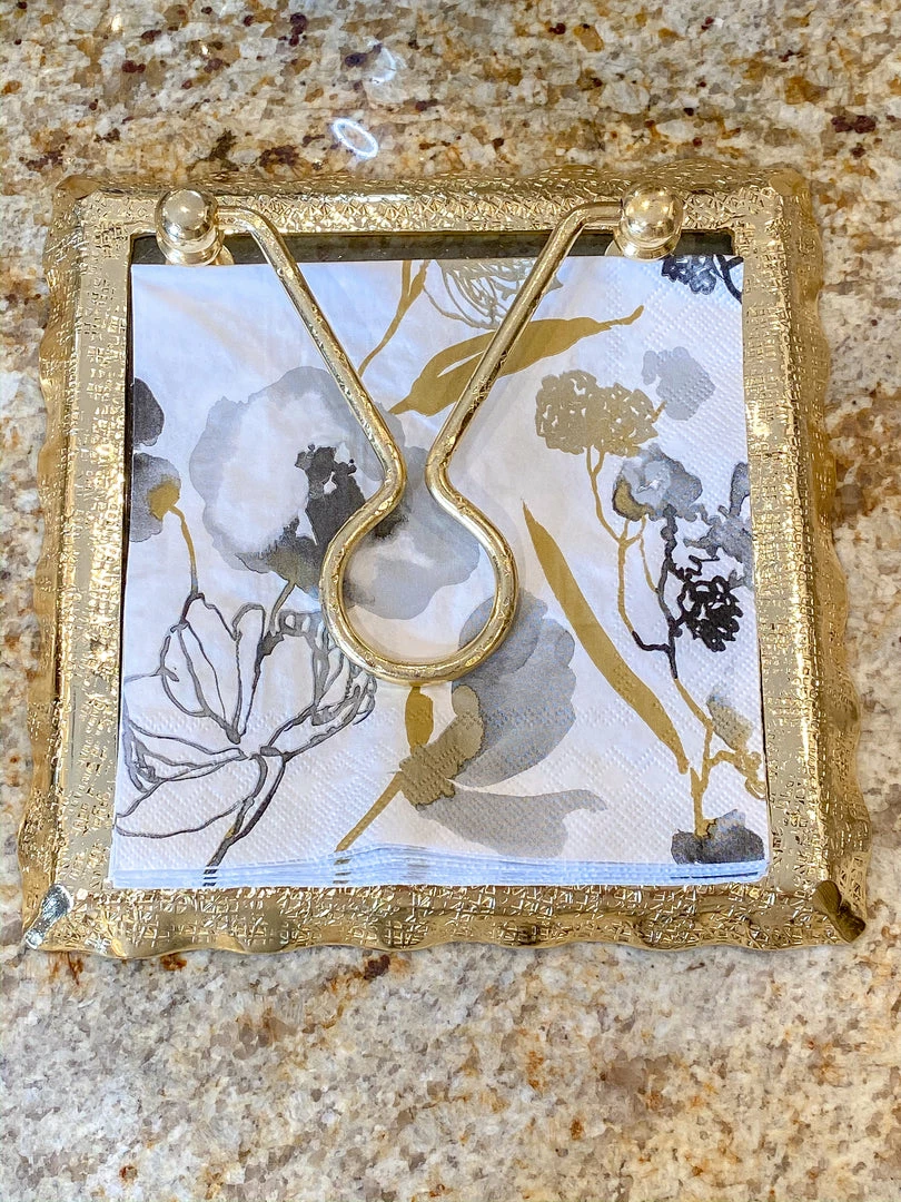 This Glass and Metal napkin holder brings elegance and grace to your kitchen. It is the perfect piece to display napkins to spruce up your kitchen island, or table.