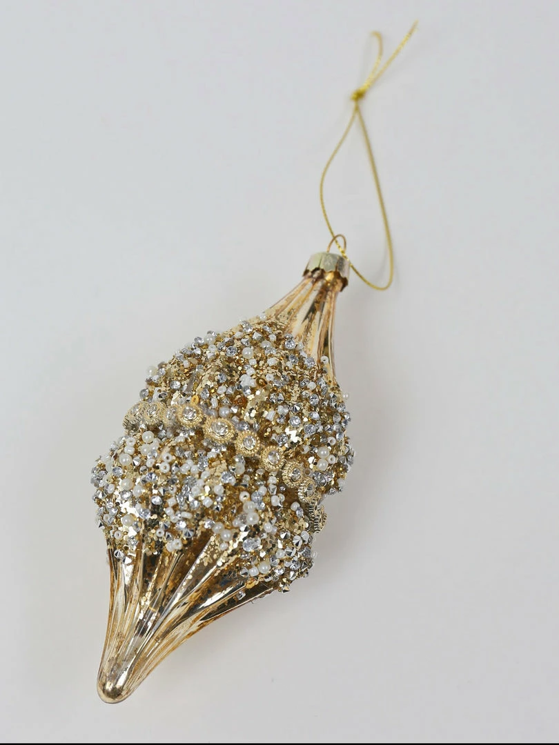 Description: This glass drop ornaments texture is amazing! The shop provides an elegant and unique look to your holiday decor this year! Available in gold and silver.