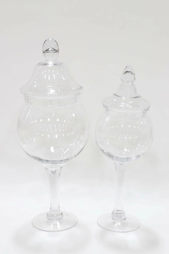 Description: These stunning glass jars are a fun and classy way to store your favorite candies! Fill these beautiful candy jars with your favorite snacks or filler and watch them transform your home decor! Available in 2 sizes!