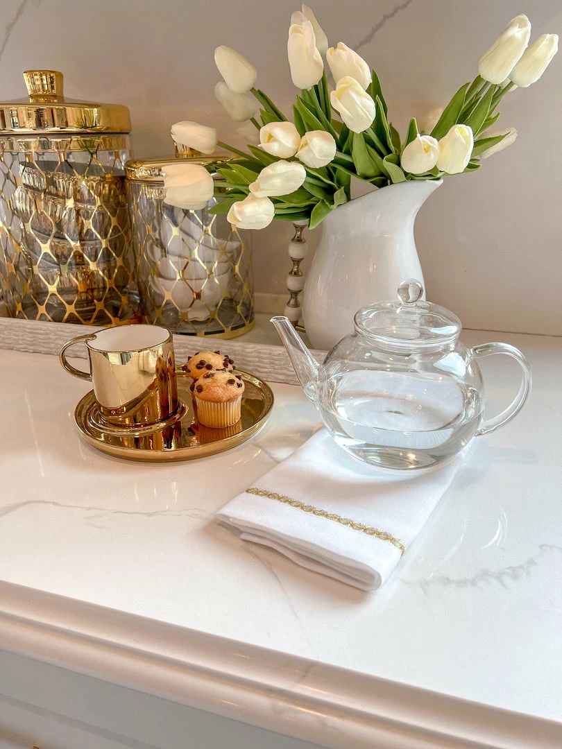 Description: The Celebration Glass Teapot is as lovely as it is durable. Crafted of crystal-clear handblown borosilicate glass, the teapot and infuser give you a 360-degree view of the tea flower unfurling within. Presented with two Teabloom jasmine-infused green tea flowers; also perfect for use with loose-leaf tea. Holds up to five 8-oz. cups, and safely goes from stovetop to microwave to dishwasher.