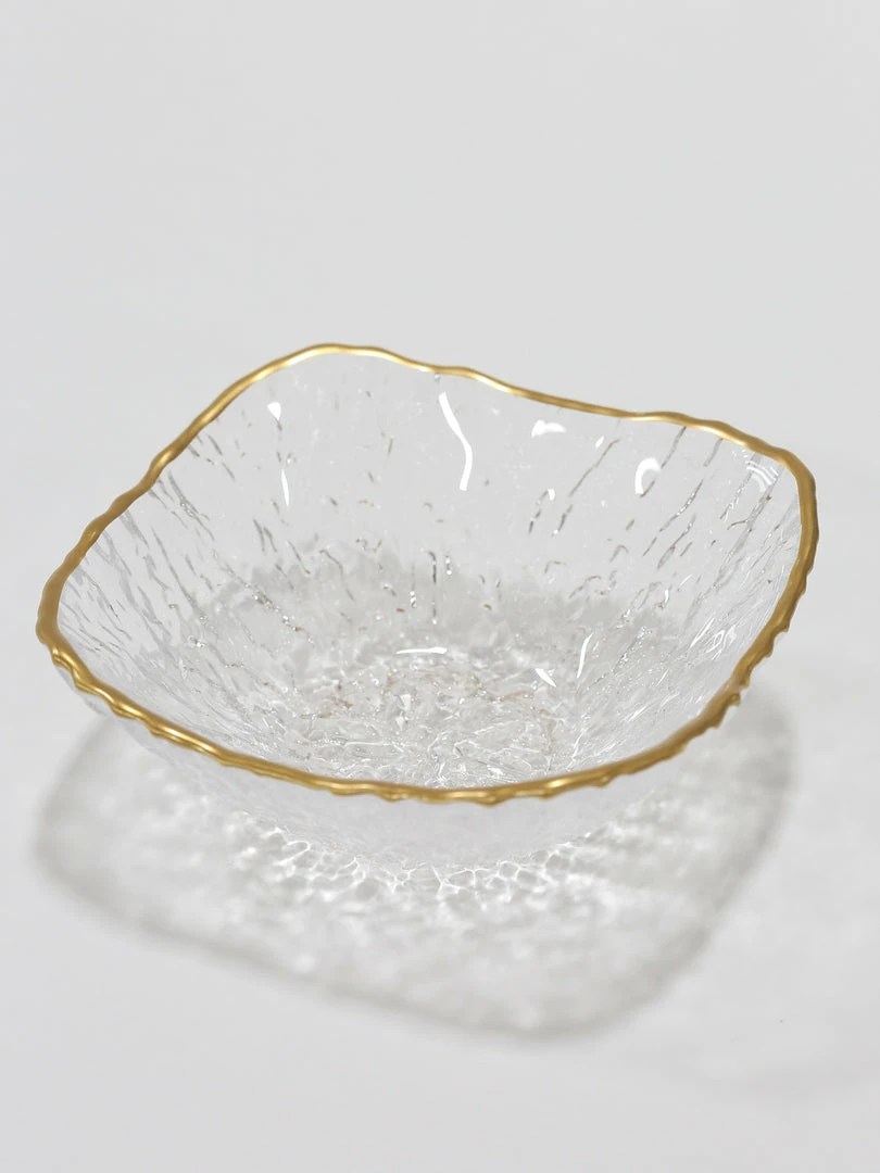 Description: This bowl features beautiful textured glass and a delicate gold trim to add to your serving experience! Perfect for serving your favorite snacks or displaying elegant fillers for your home decor!