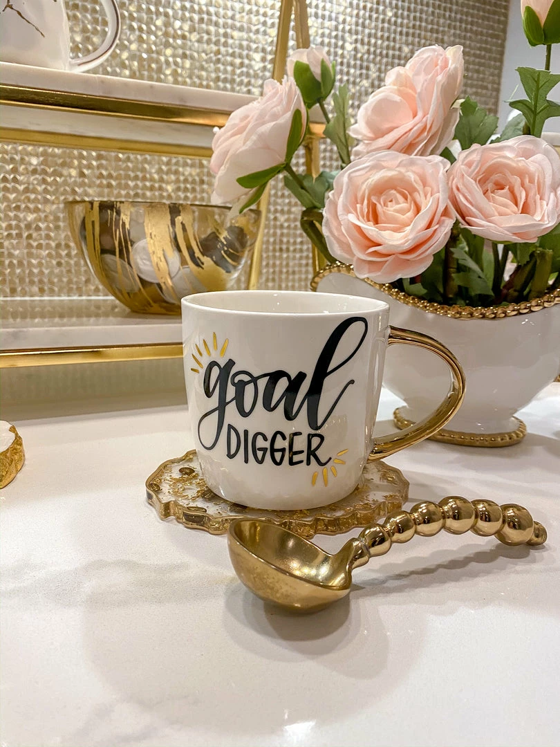 Description:This mug if perfect for those who hustle every day to achieve their goals. We love a strong Goal Digger! The gold handle adds an extra touch of elegance that we love!