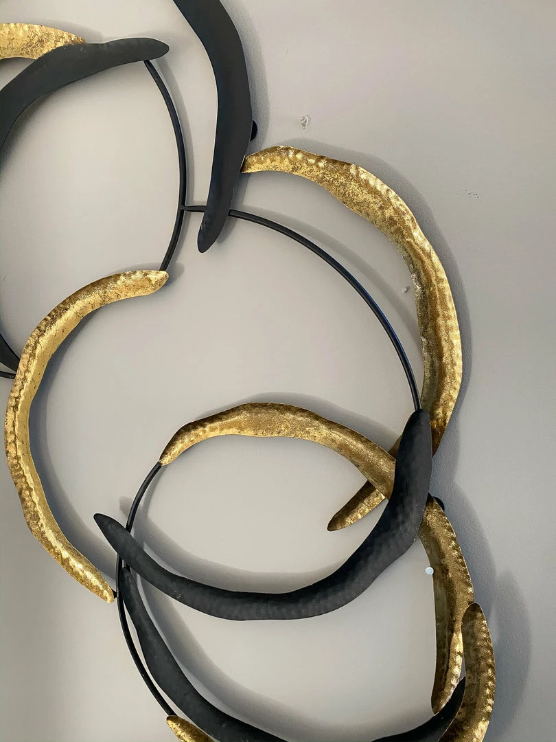 This metal wall art with black and gold loops is a perfect statement piece for any wall in any room!