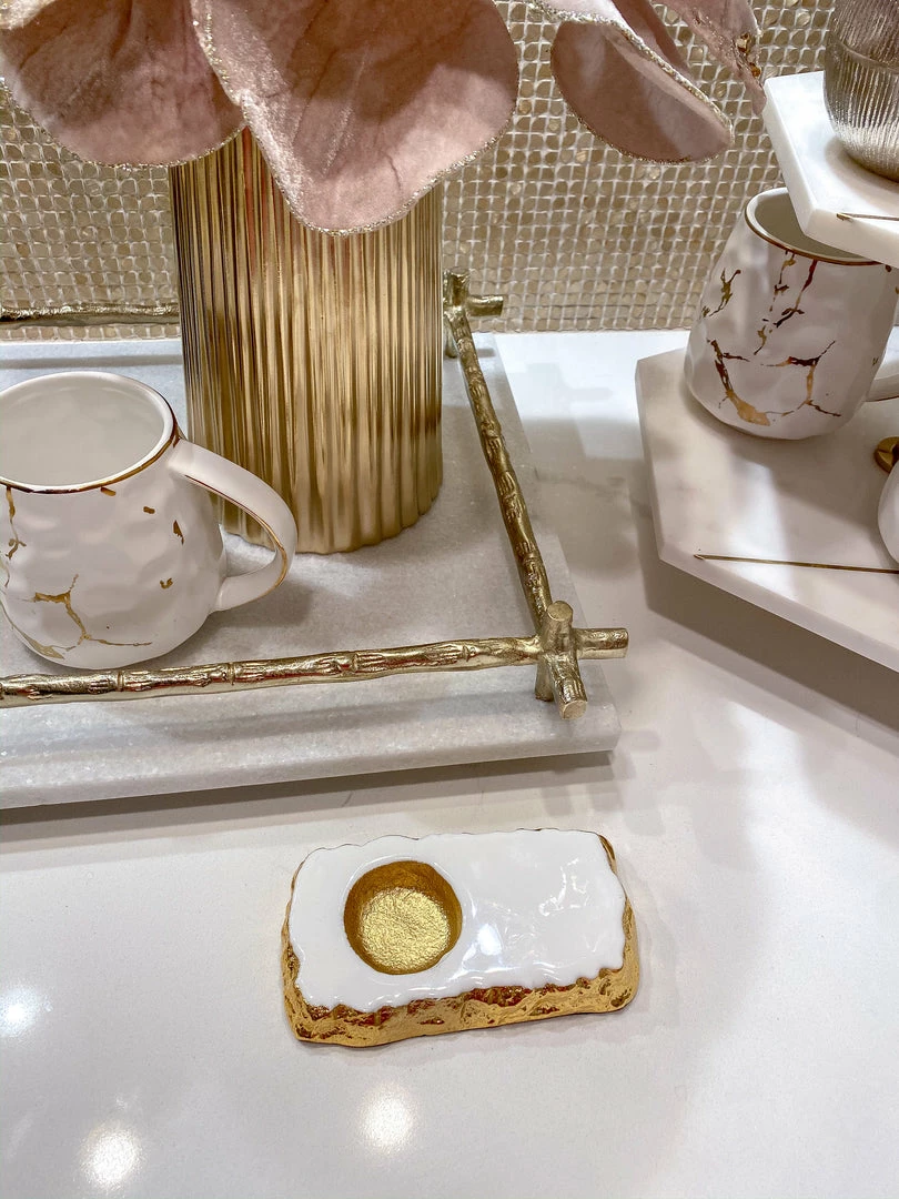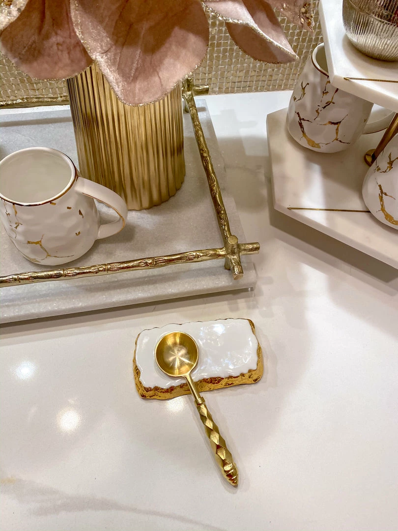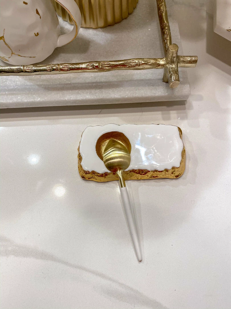 Description: This piece is one of kind! Use it to rest your teaspoons on in your coffee station. Can also be used as a tealight holder.