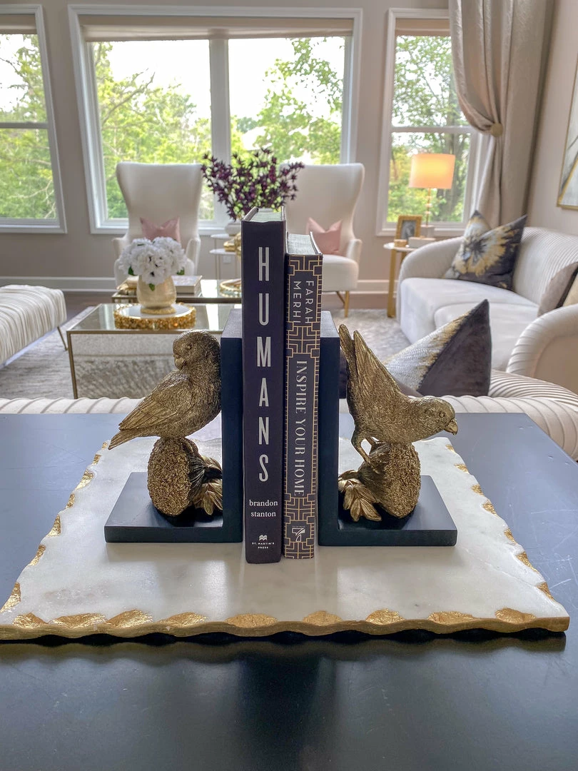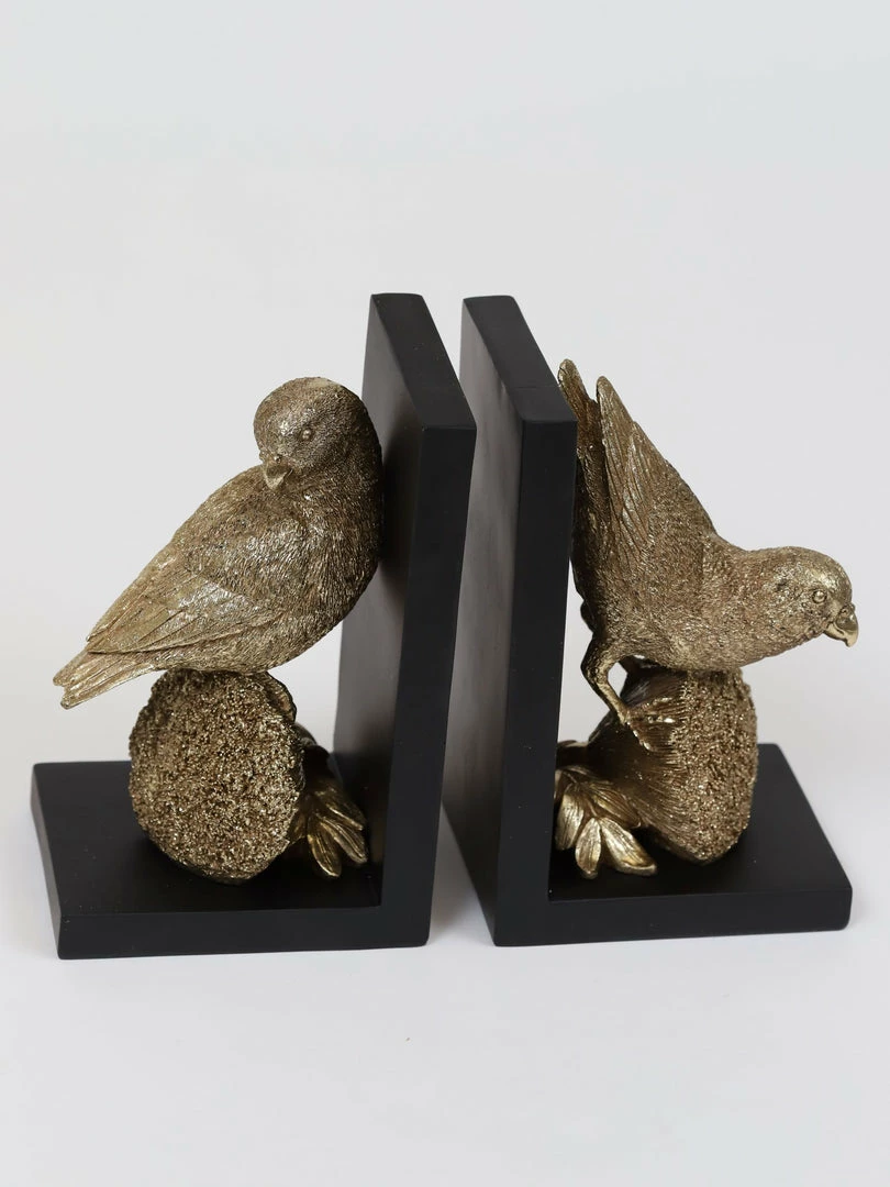 Description: This beautiful book ends will make a perfect addition to your home library! These graceful golden birds have beautiful details that make them a unique piece!