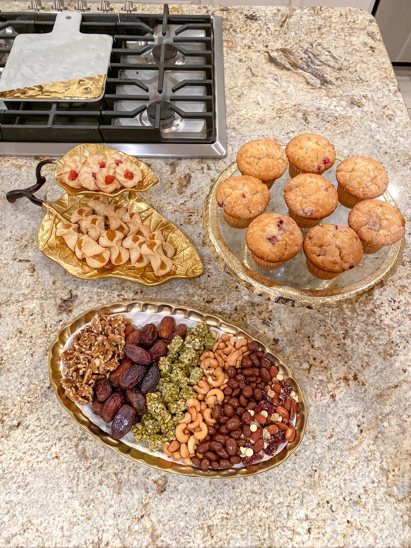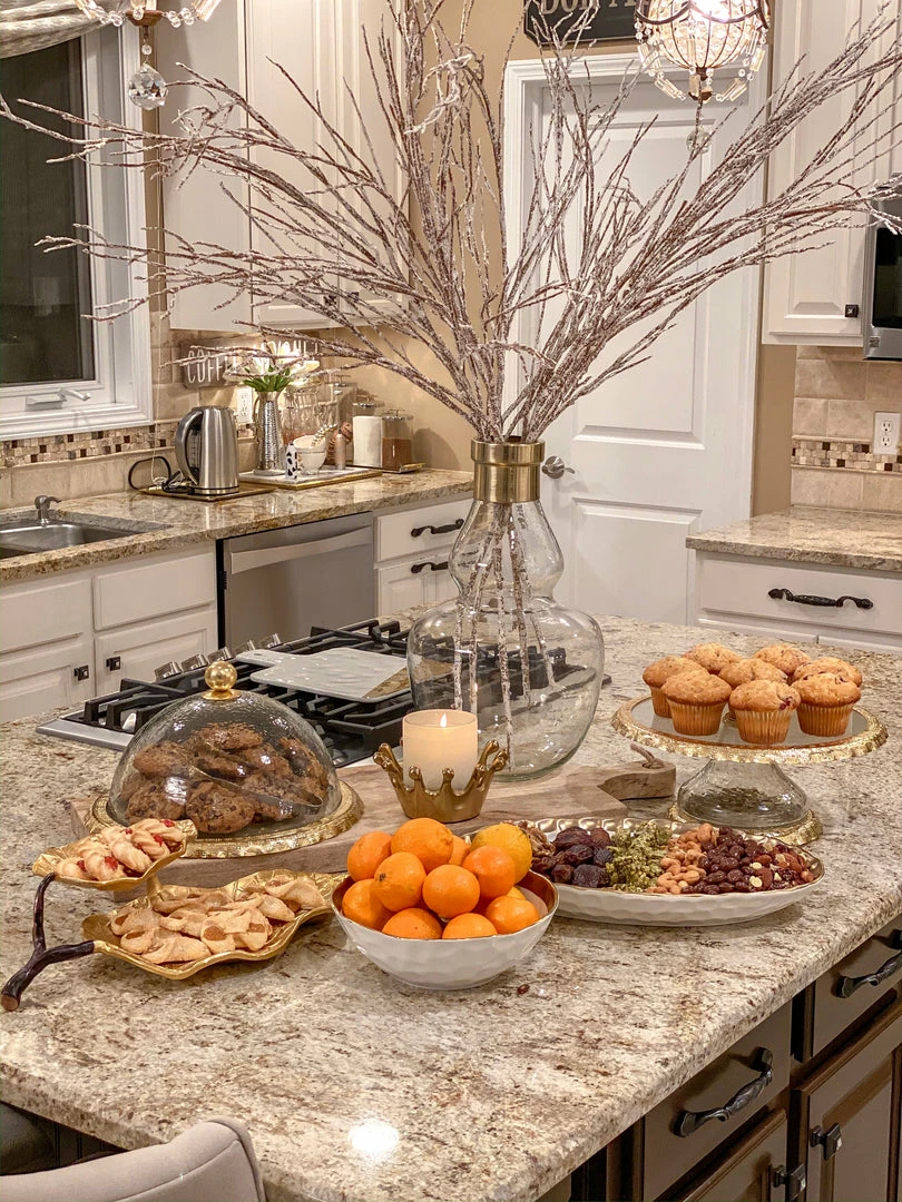 Inspire Me! Home Decor Round Marble Tray With Gold Edge And Metal Details