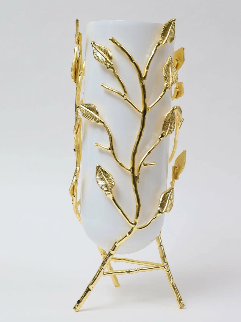 Description: This stunning vase features an opaque white glass vase and an intricate gold base! This vase will hold your favorite faux florals in style.