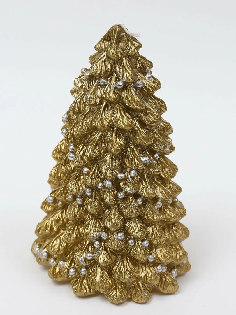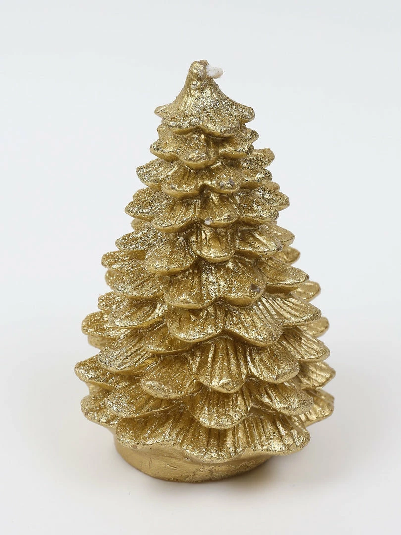 Description: What could be more festive than a gold Christmas tree candle for this holiday season! This candle is unscented and comes in two sizes. Priced for one candle.