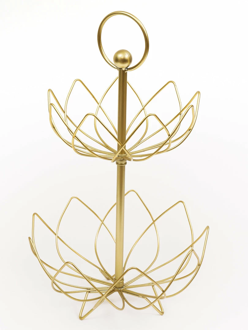 Description: This flower-shaped two-tier display is perfect for holding your favorite snacks or fruit! We love the intricate design.