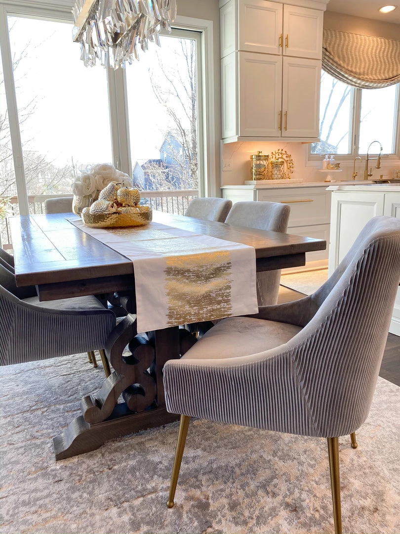 Description: These stunning gold foil patterned table runners will take your dining table to the next level! We love the metallic shimmer that these show. Perfect for entertaining guests or for keeping your table in tip top shape!