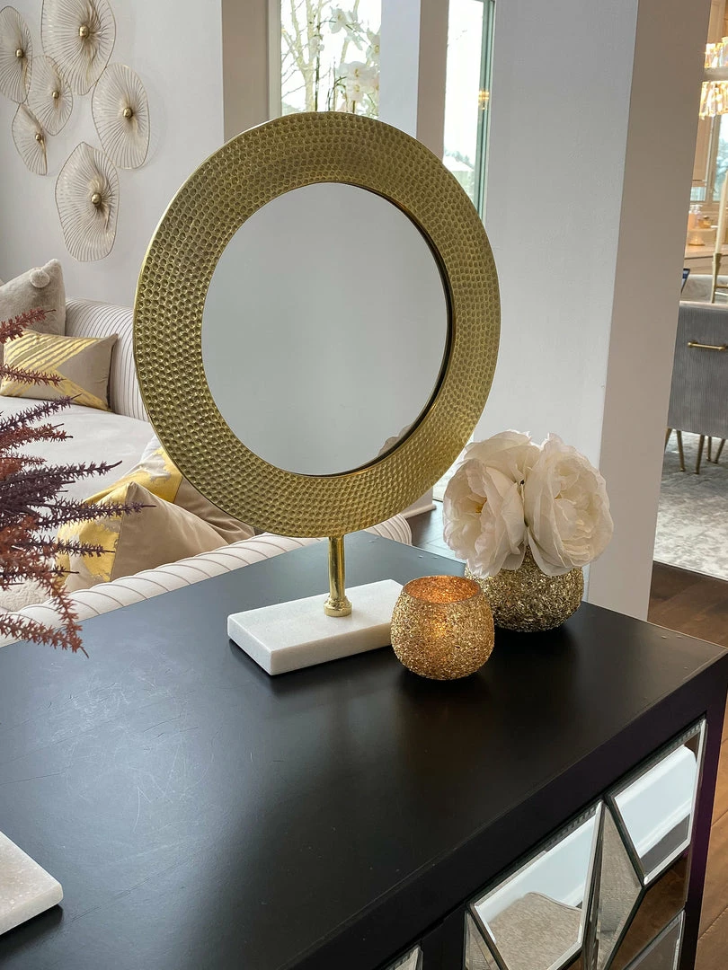 Description: This beautiful gold jeweled votive is a perfect little fixture for your favorite candles and accessories! The luxurious gold finish is created with a thick coating of beautiful glass jewels and offers the epitomy of elegance! Available in 2 sizes!