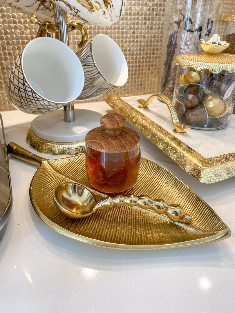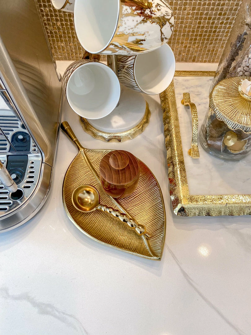 Description: This gorgeous gold tray is perfect for displaying our coasters, candles or snacks!